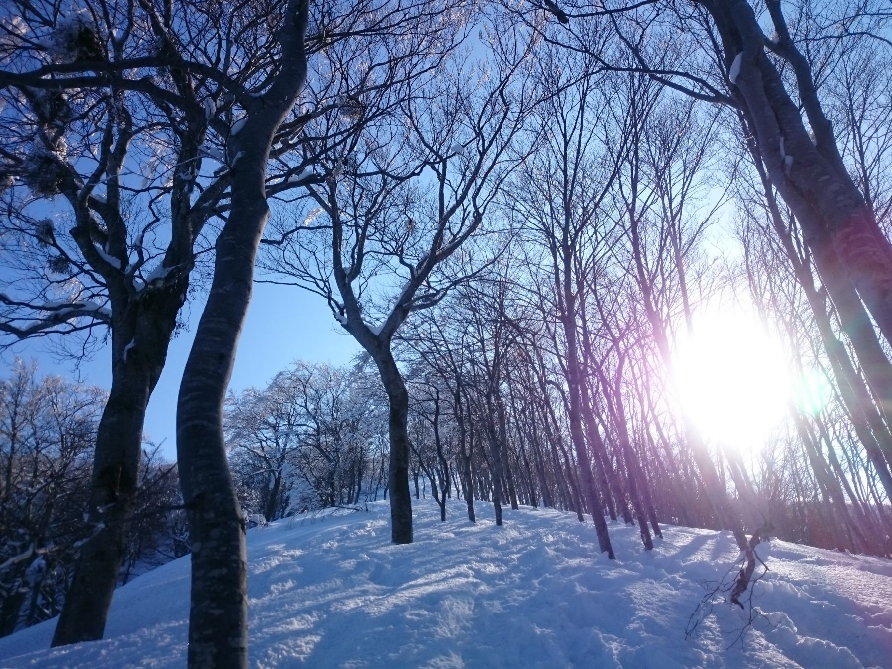 登山口となる二分集落は豪雪地帯のため、登り初めから完全に雪道。