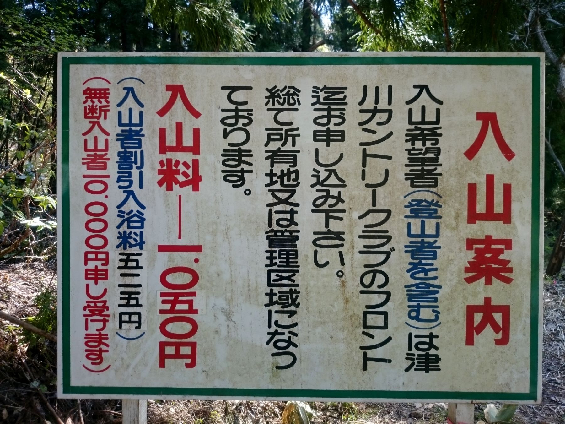 (*ただし、入山料として1人当たり1050円が必要になります。)