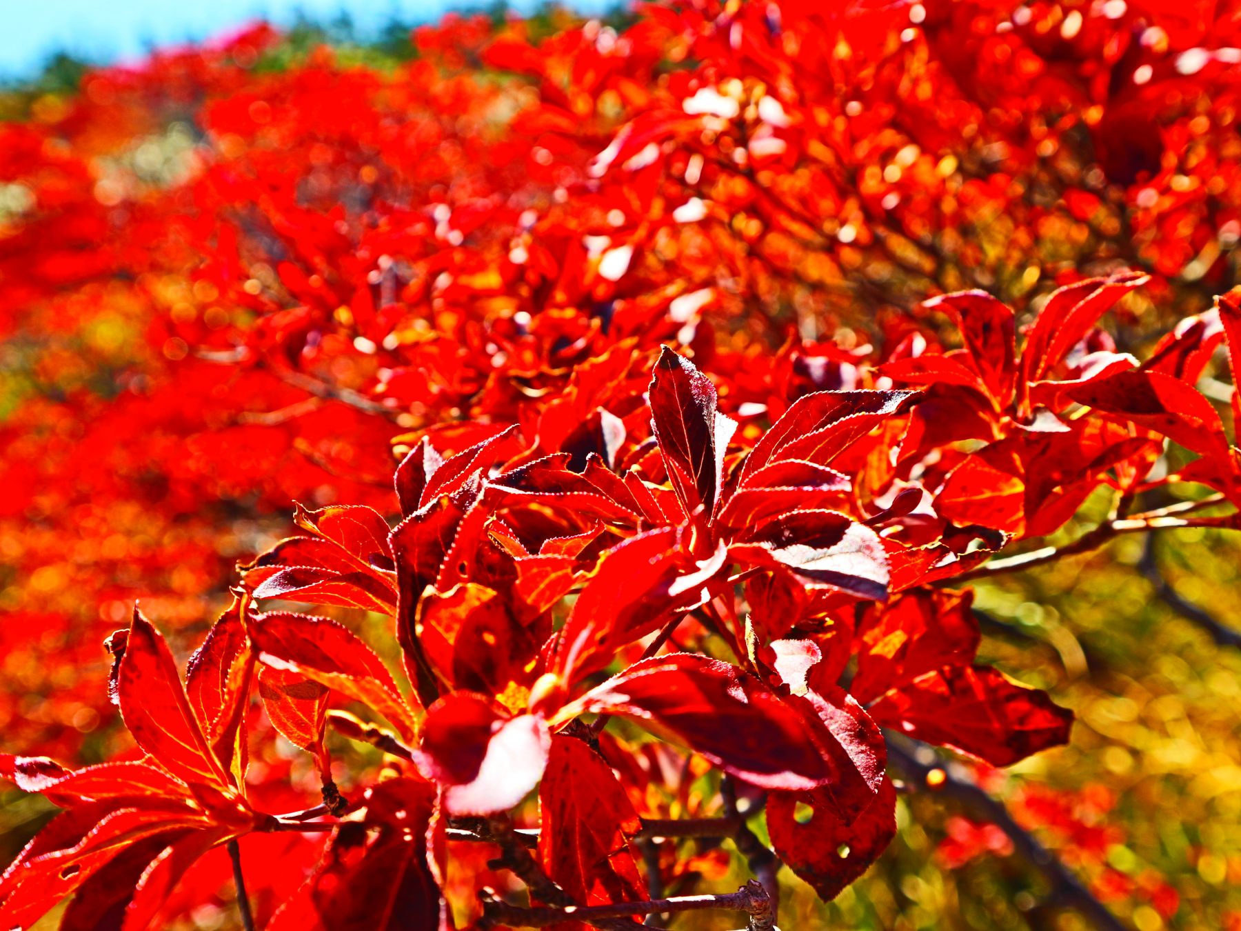 真っ赤に紅葉したドウダンツツジの風景が目の前に広がりました。