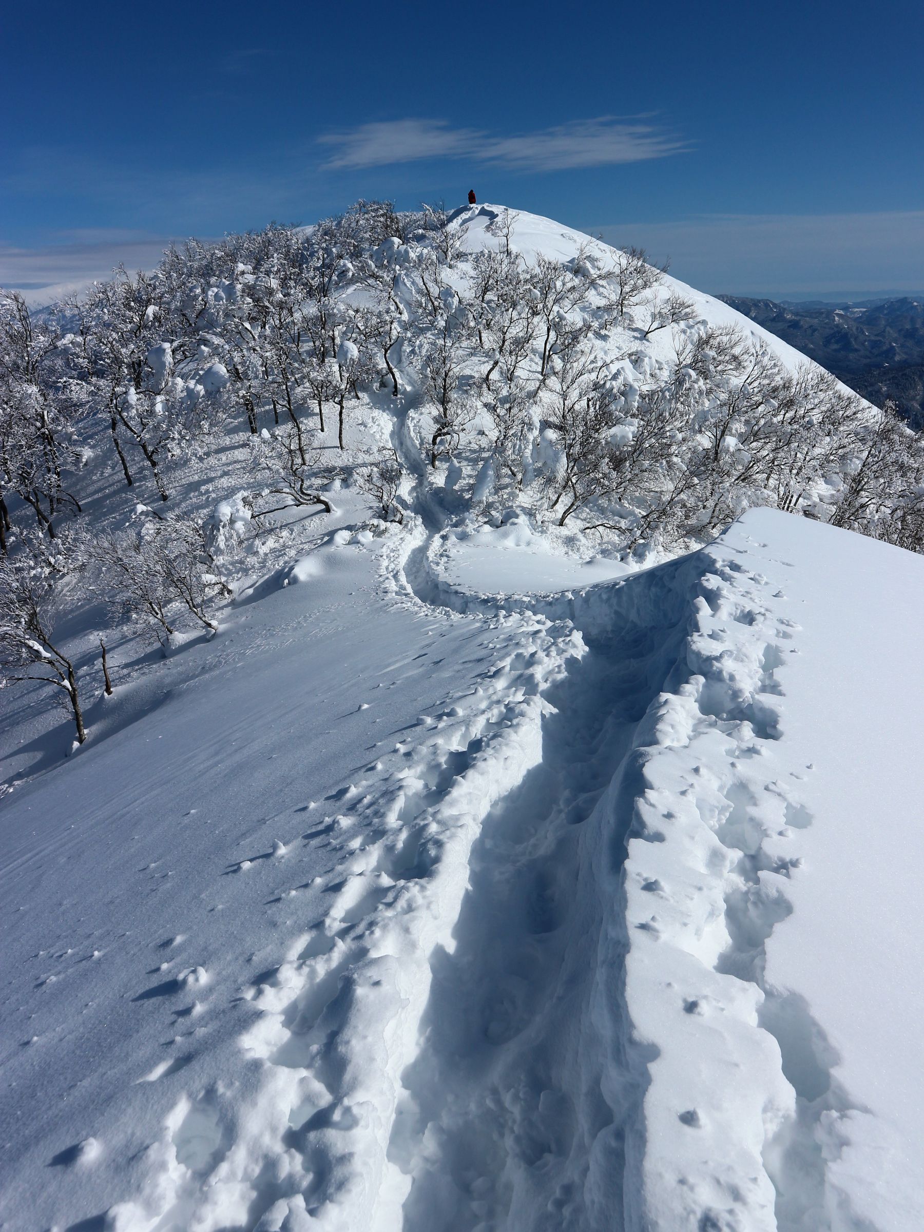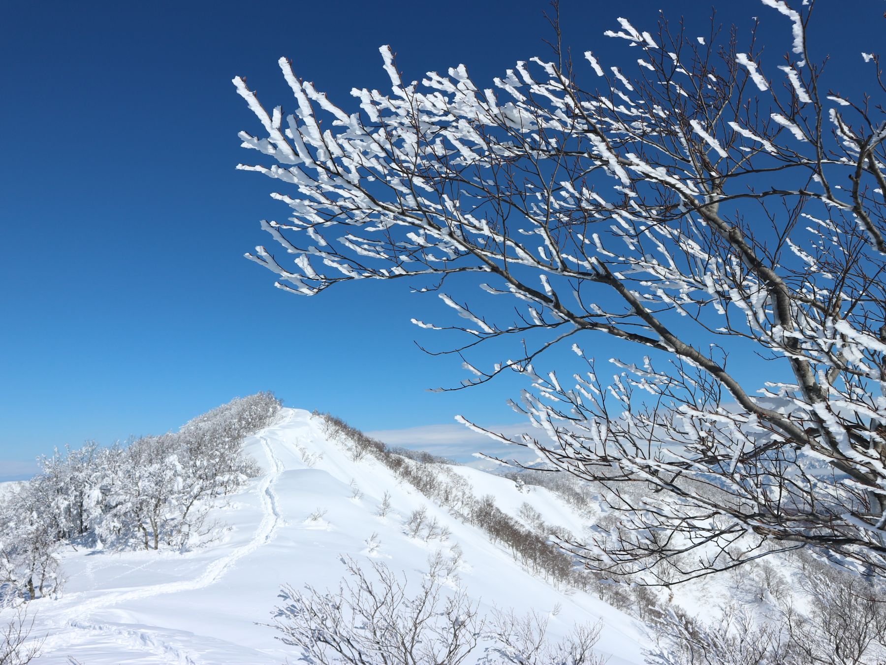 眼下には阿賀町や会津の名もなき山々が霧氷に囲まれ、