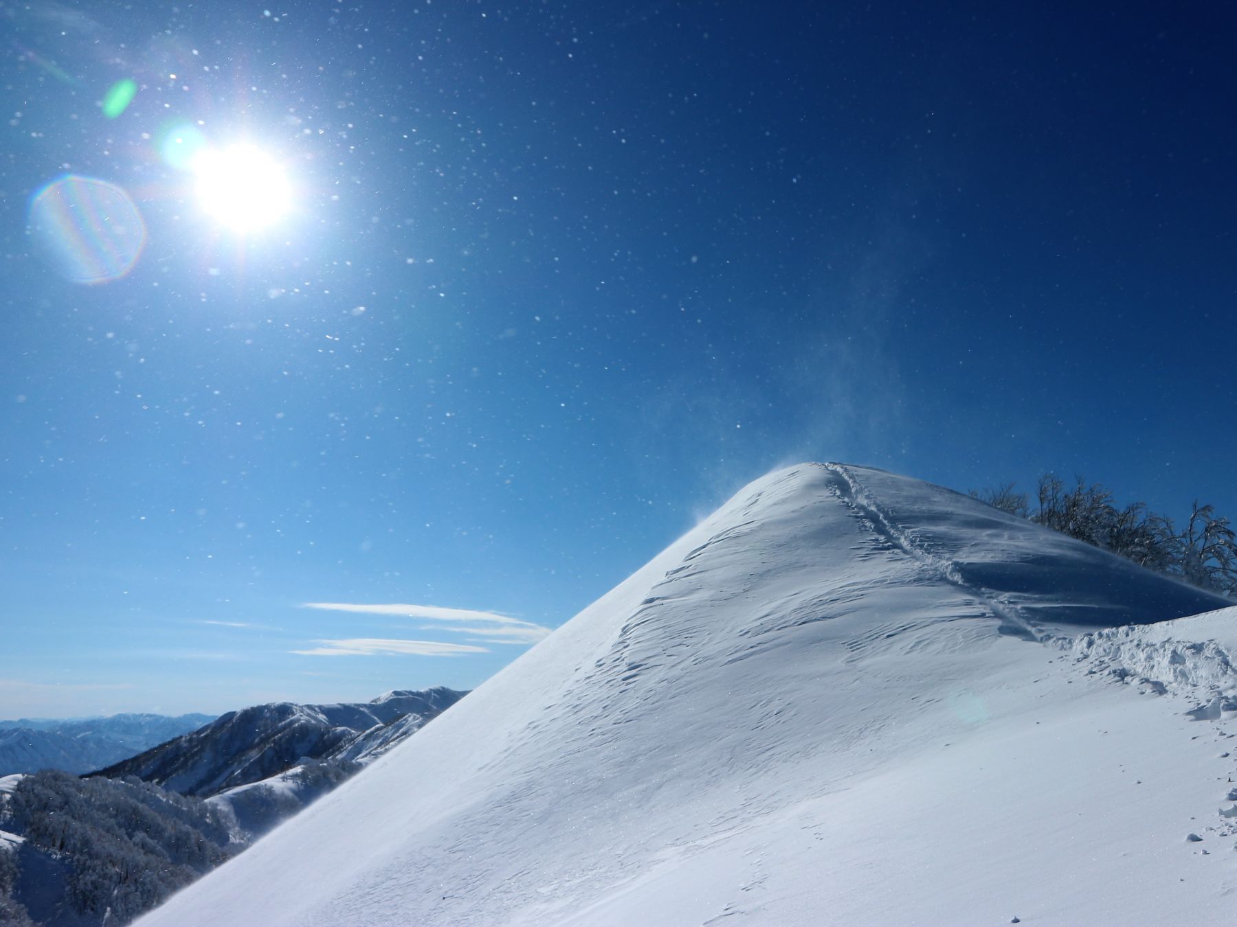 さらに奥には飯豊連峰の真っ白な稜線が連なっています。