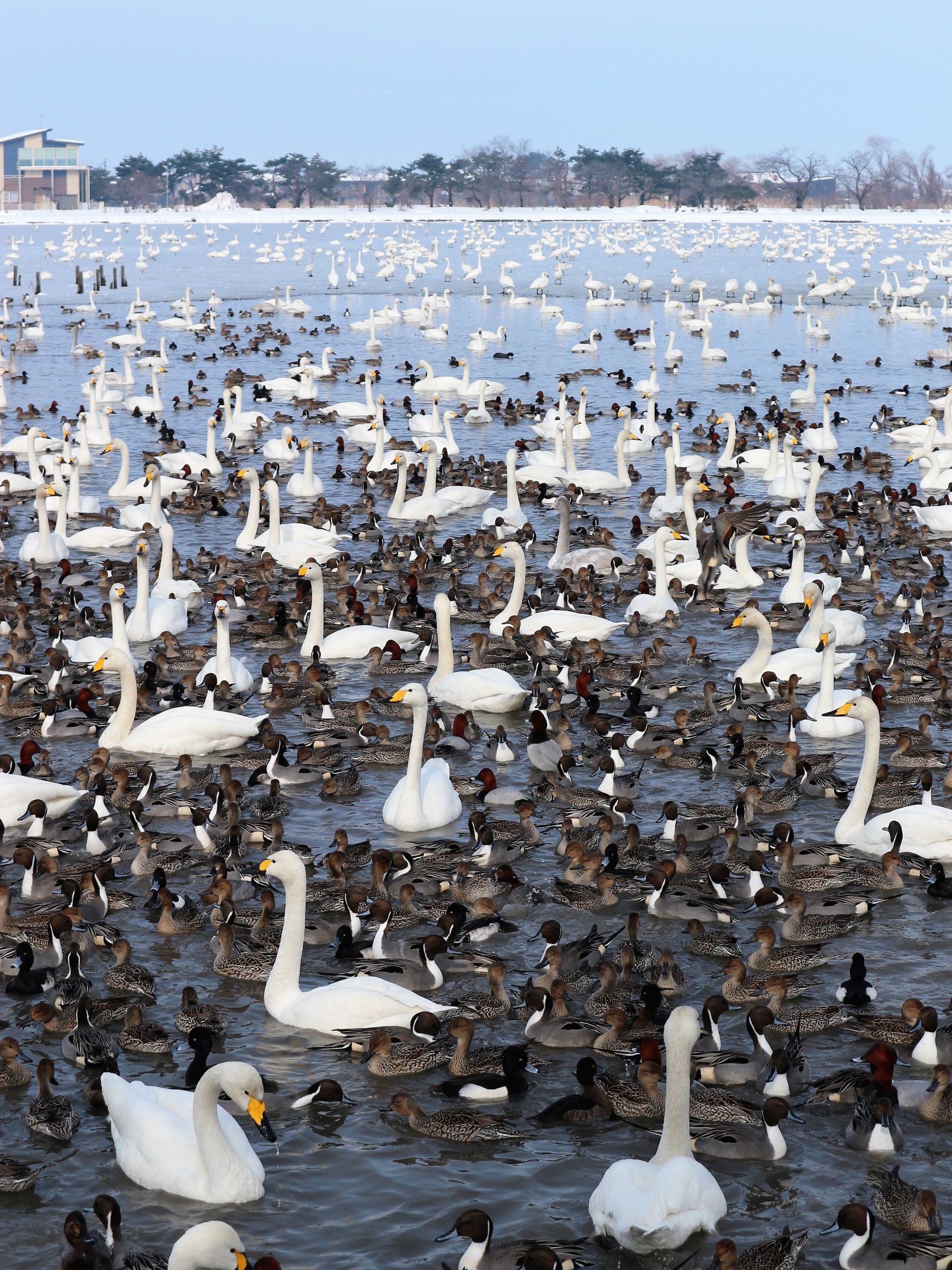 瓢湖は全国的にも有名な白鳥の渡来地です。