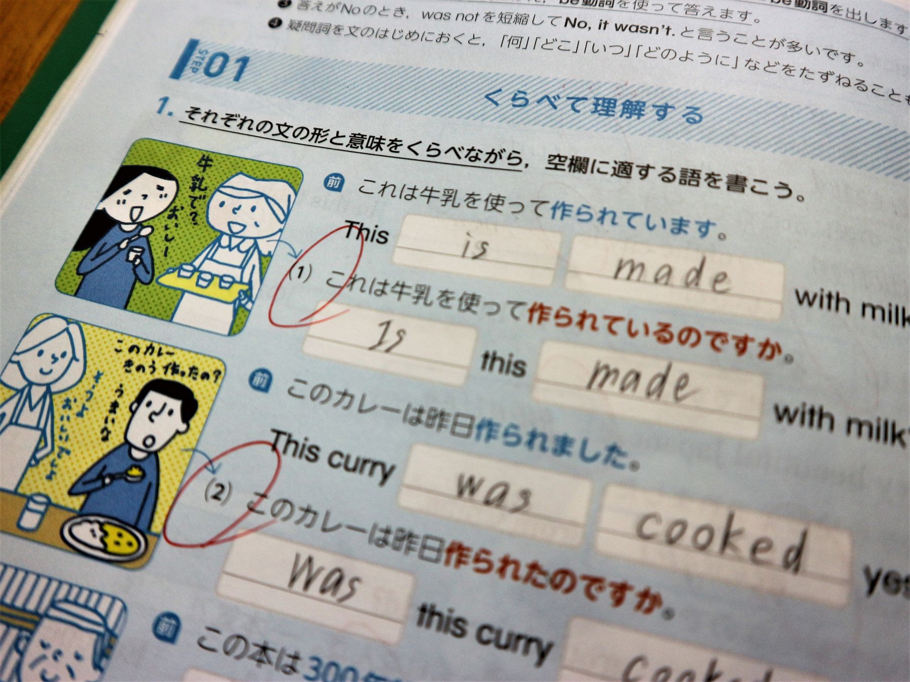 イラストを多く使い、段階を踏んで英文法が練習できる構成になっています。