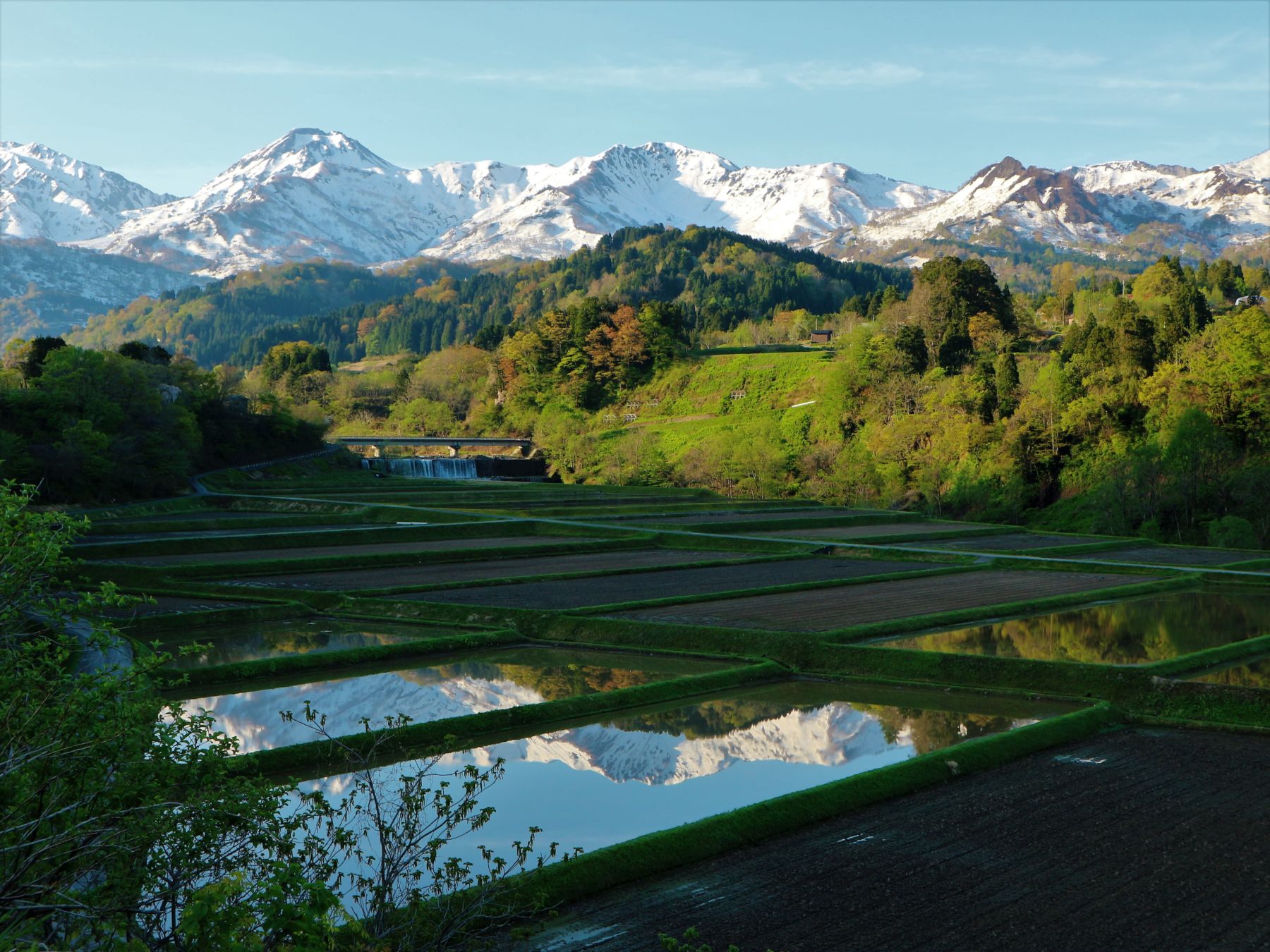 すぐ目の前には火打山や妙高山、遙か彼方には白馬連峰の山々が連なります。