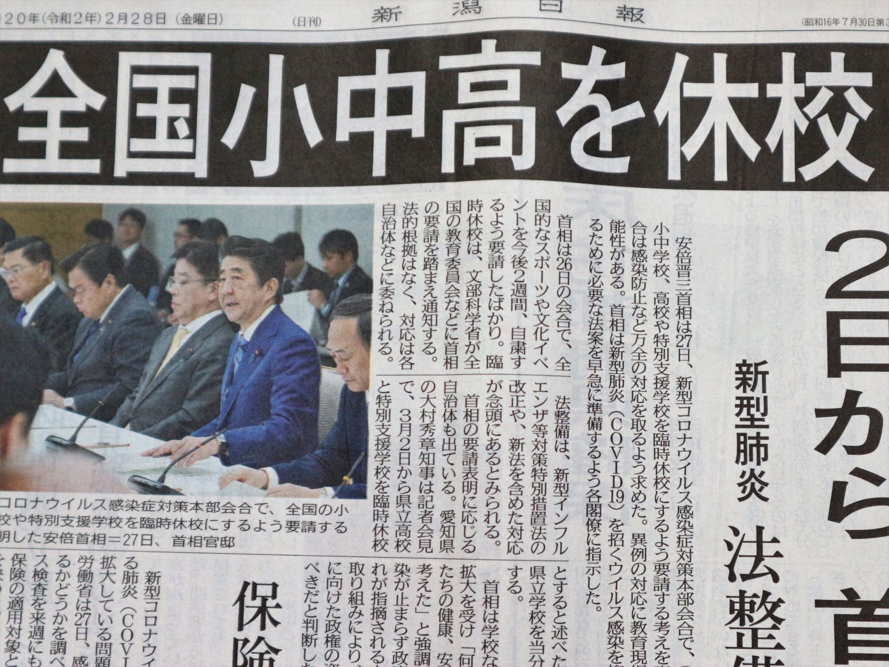 新型コロナウイルスの広まりに伴い、新潟県内の小/中/高校が4月初めまで休校となりましたが、