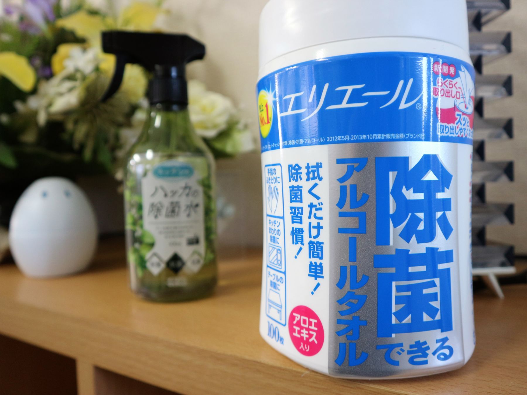 ●一定時間毎にアルコールタオルでドアノブや机などを拭き取る。