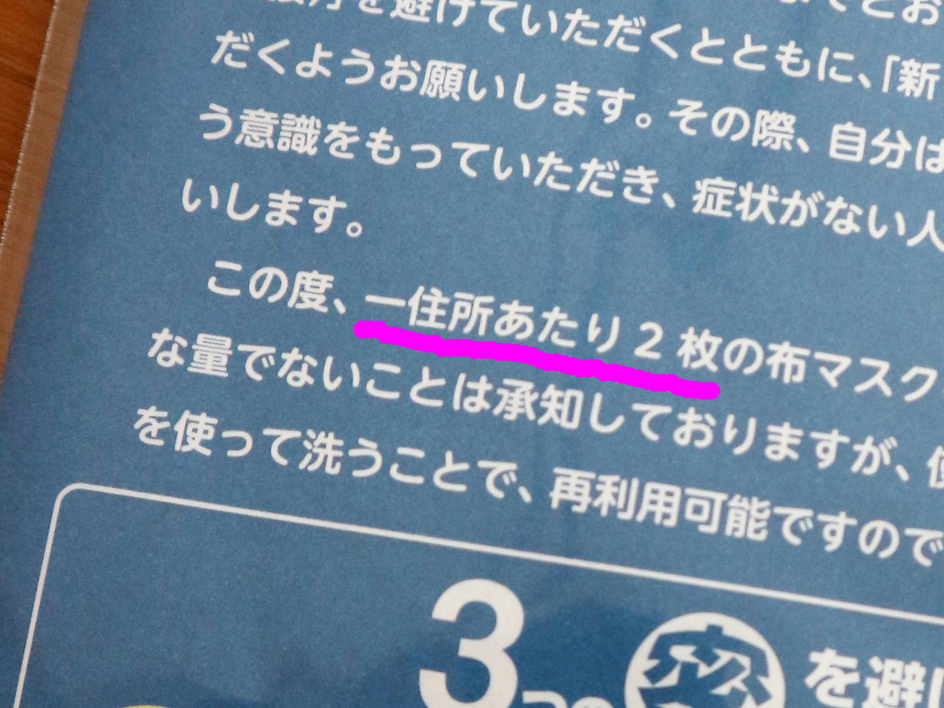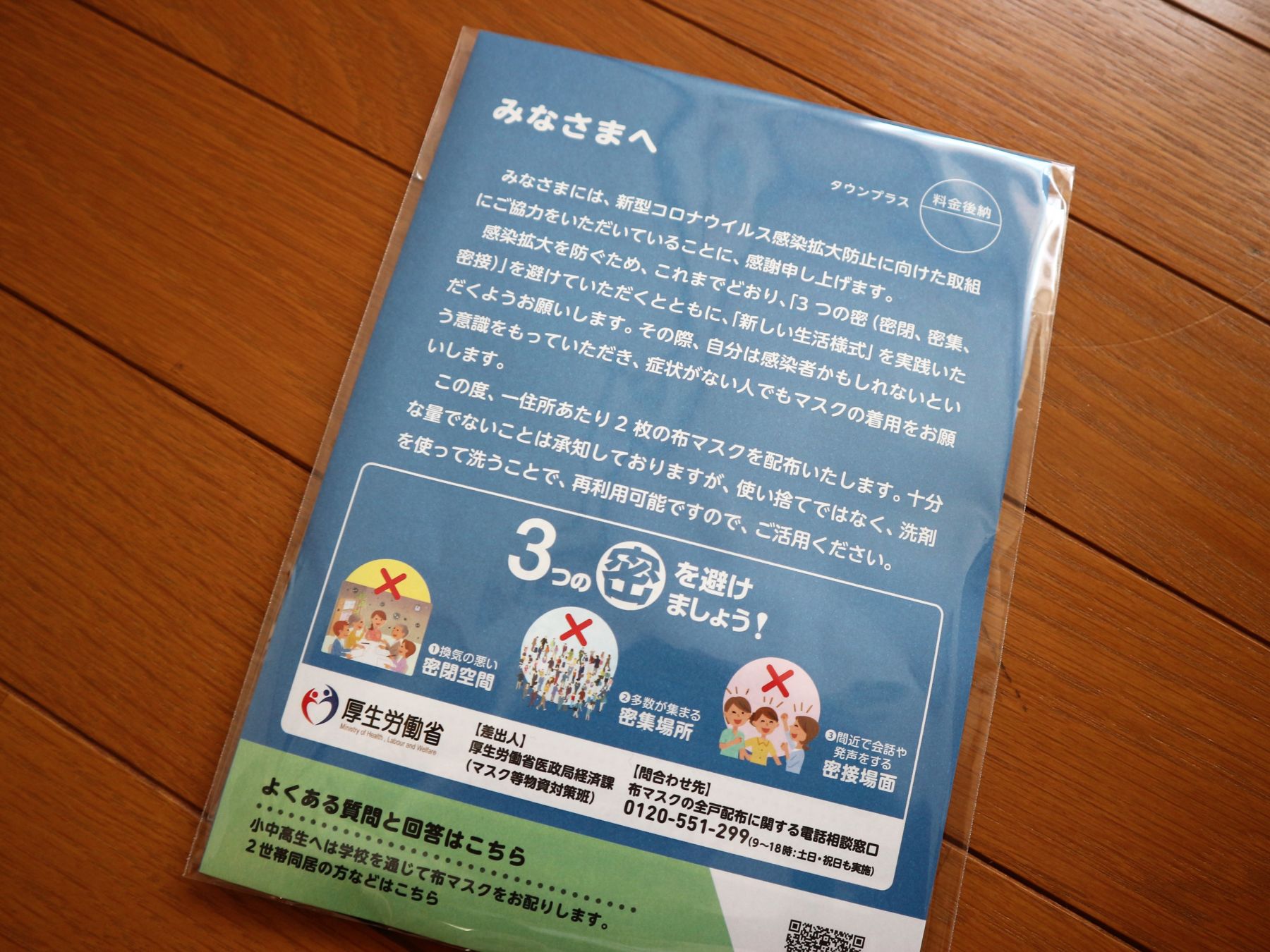 塾にもアベノマスクが届きました! 2020/06/12 本日2020年6月12日(金)、個別指導Forestの教室にアベノマスクが届きました! 私の自宅にはすでに3日前に届いていましたが、塾にも配達されたのには驚きました。 マスクは一世帯でなく「一住所」あたり2枚だったんですね…(^^;) お恥ずかしい話ですが、知りませんでした。 せっかくですので、教室での指導の際に使わせて頂きます。 ありがとうございましたm(_ _)m