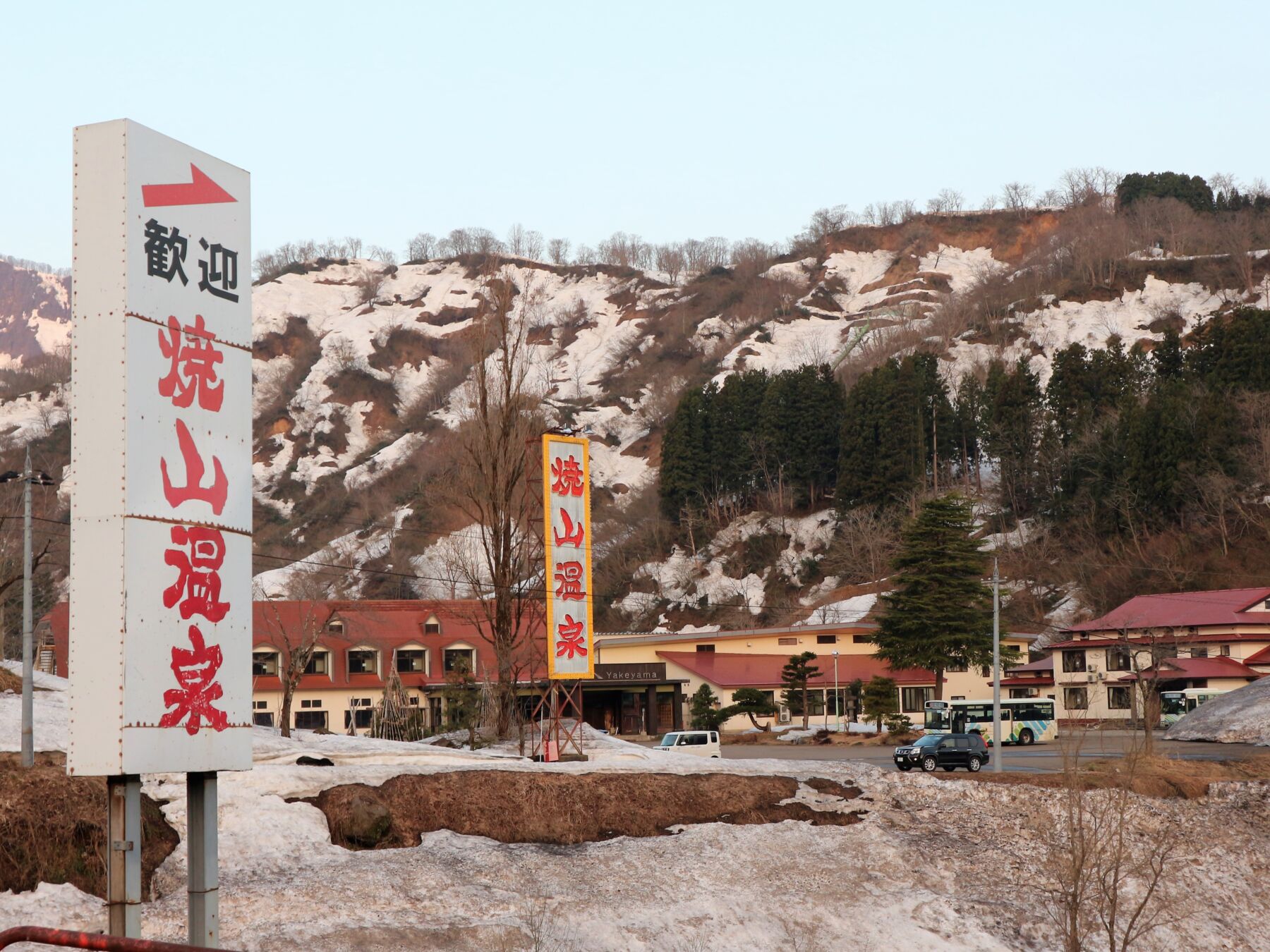 朝6時に焼山温泉の駐車場を出発。歩き始めからもう雪の上です。