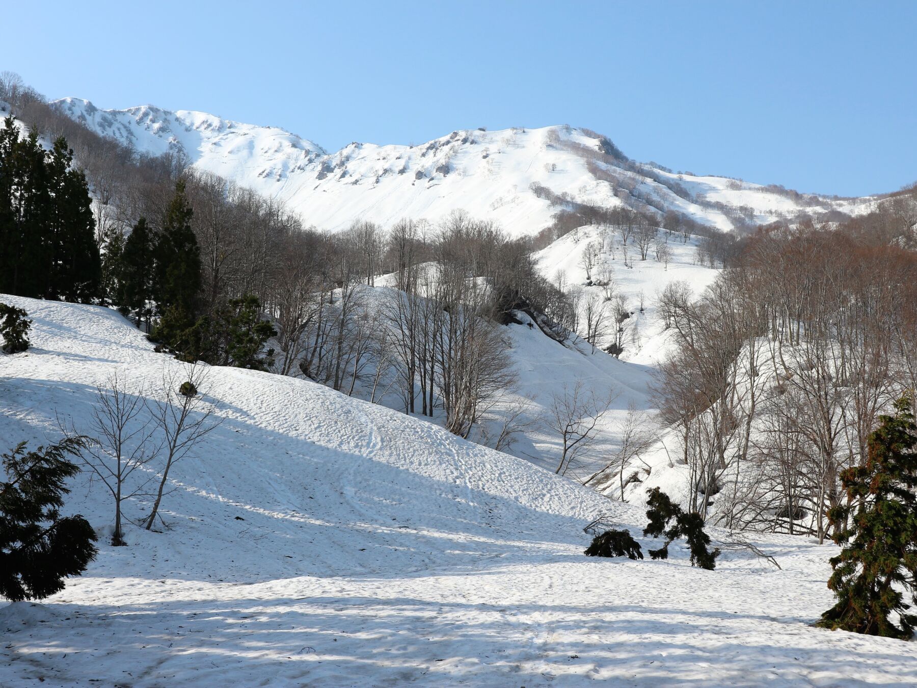 ゲレンデや雪で埋まった林道を進み、1時間50分で昼闇谷を通過。他の登山者は皆無。