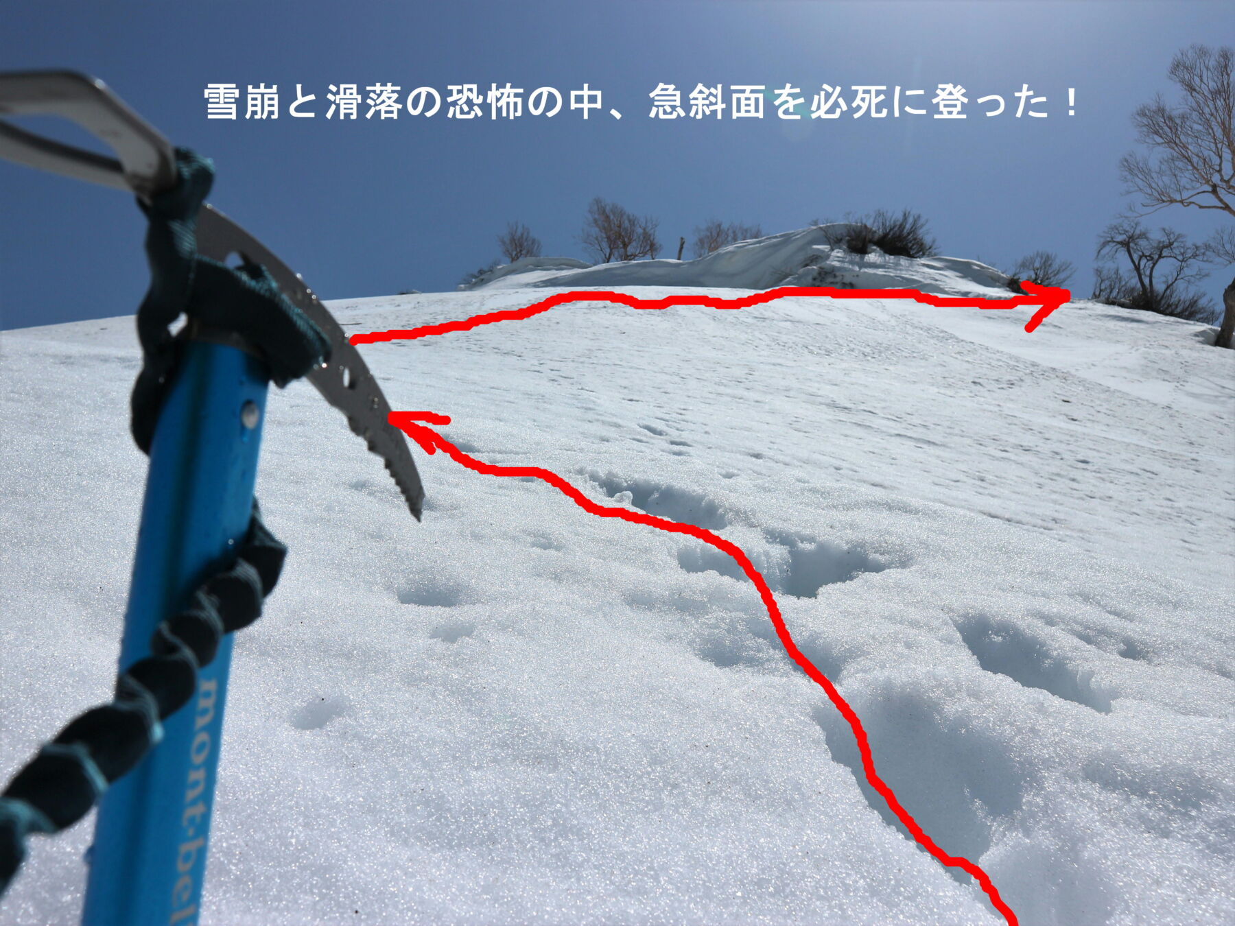 そうして雪崩と滑落の恐怖の中、必死に急斜面を登り詰めました。