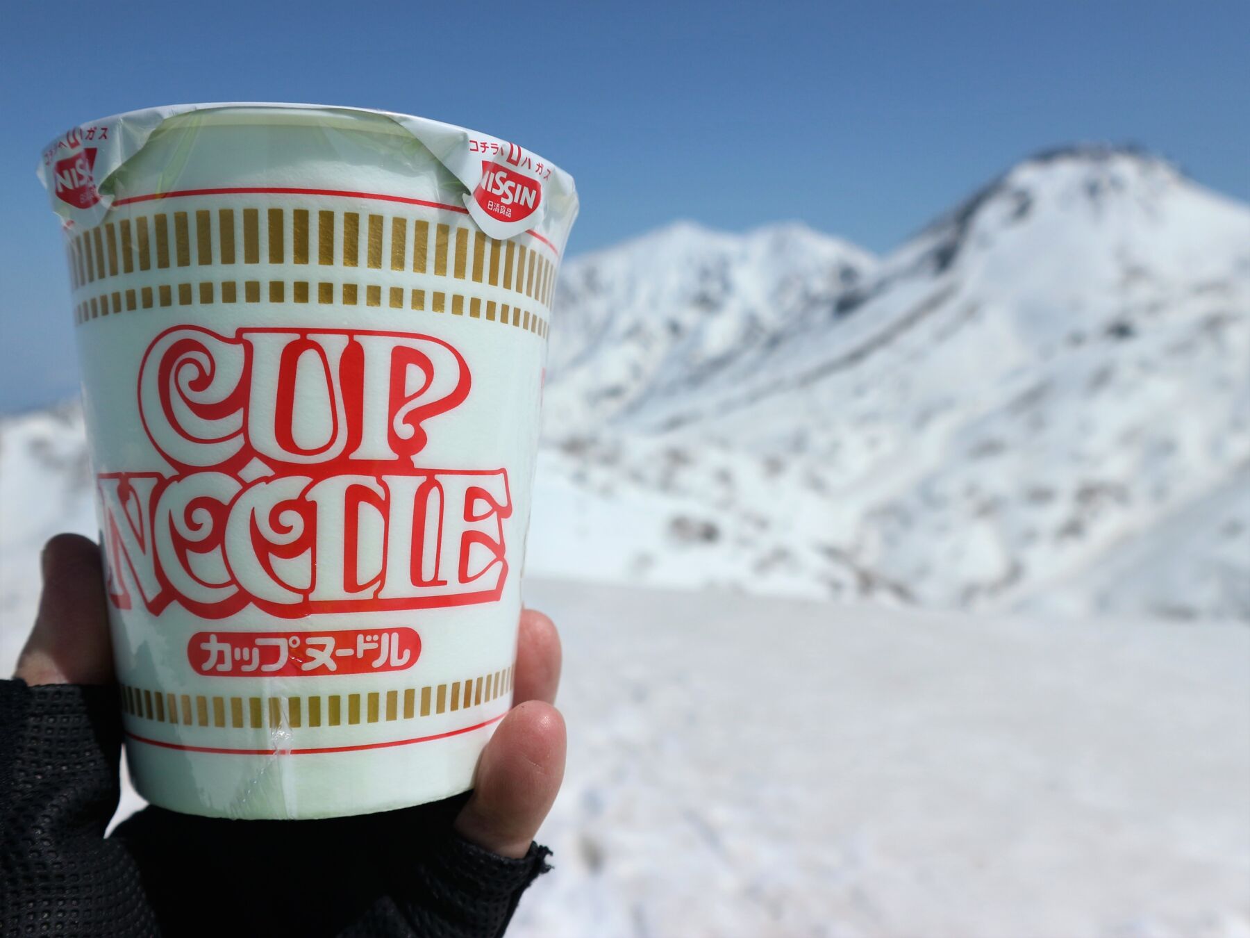 誰もいない昼闇山山頂。大展望を眺めながら、ゆっくりとラーメンをすすりました。