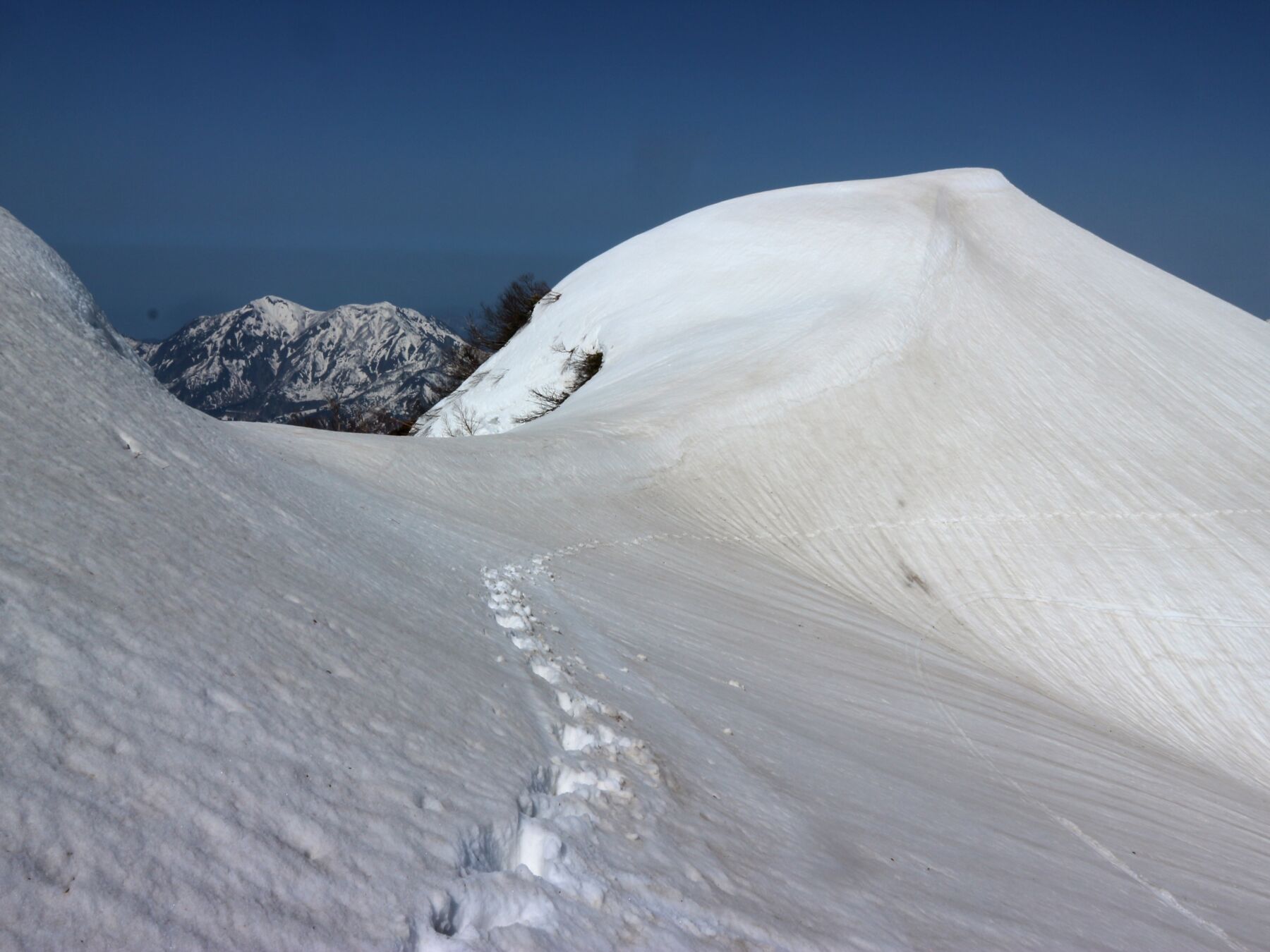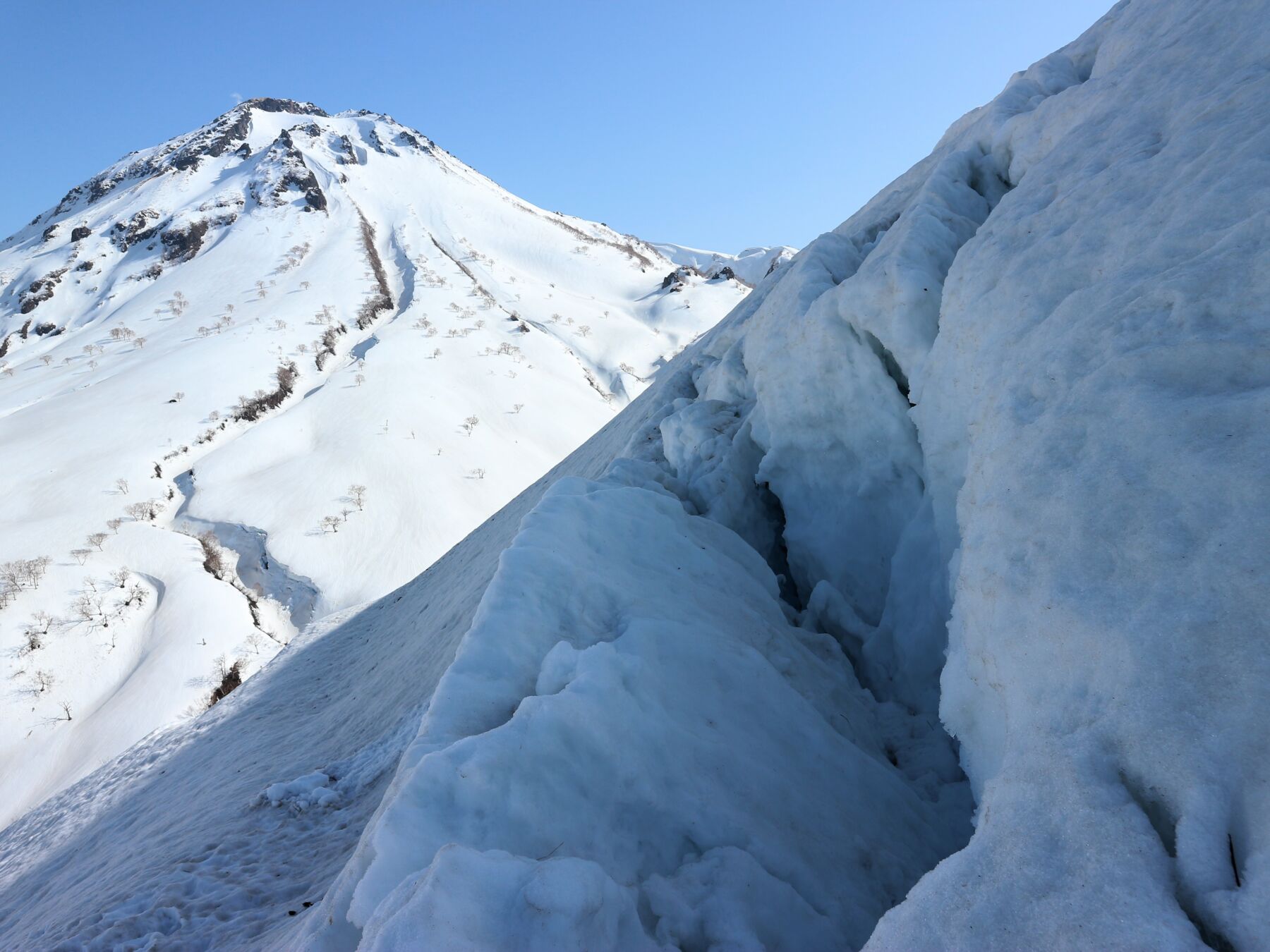 積雪期限定の山。アイゼンとピッケルを頼りに、雪山経験者のみが登れる山です。