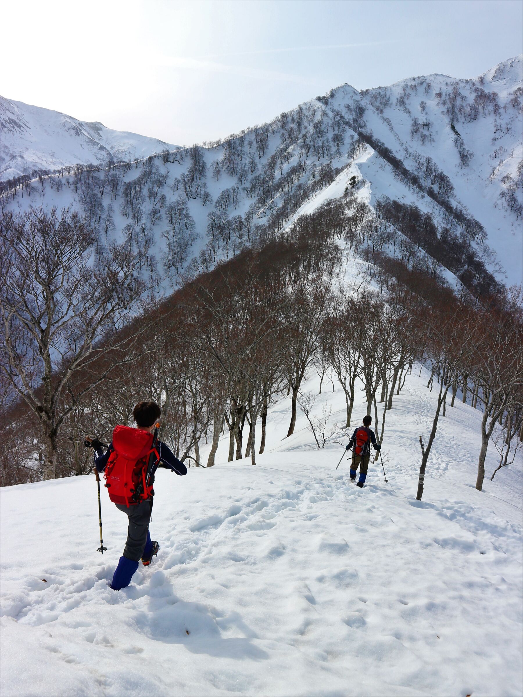 1時間ほど雪で埋まった林道を歩き、そこからようやく尾根に取り付きます。