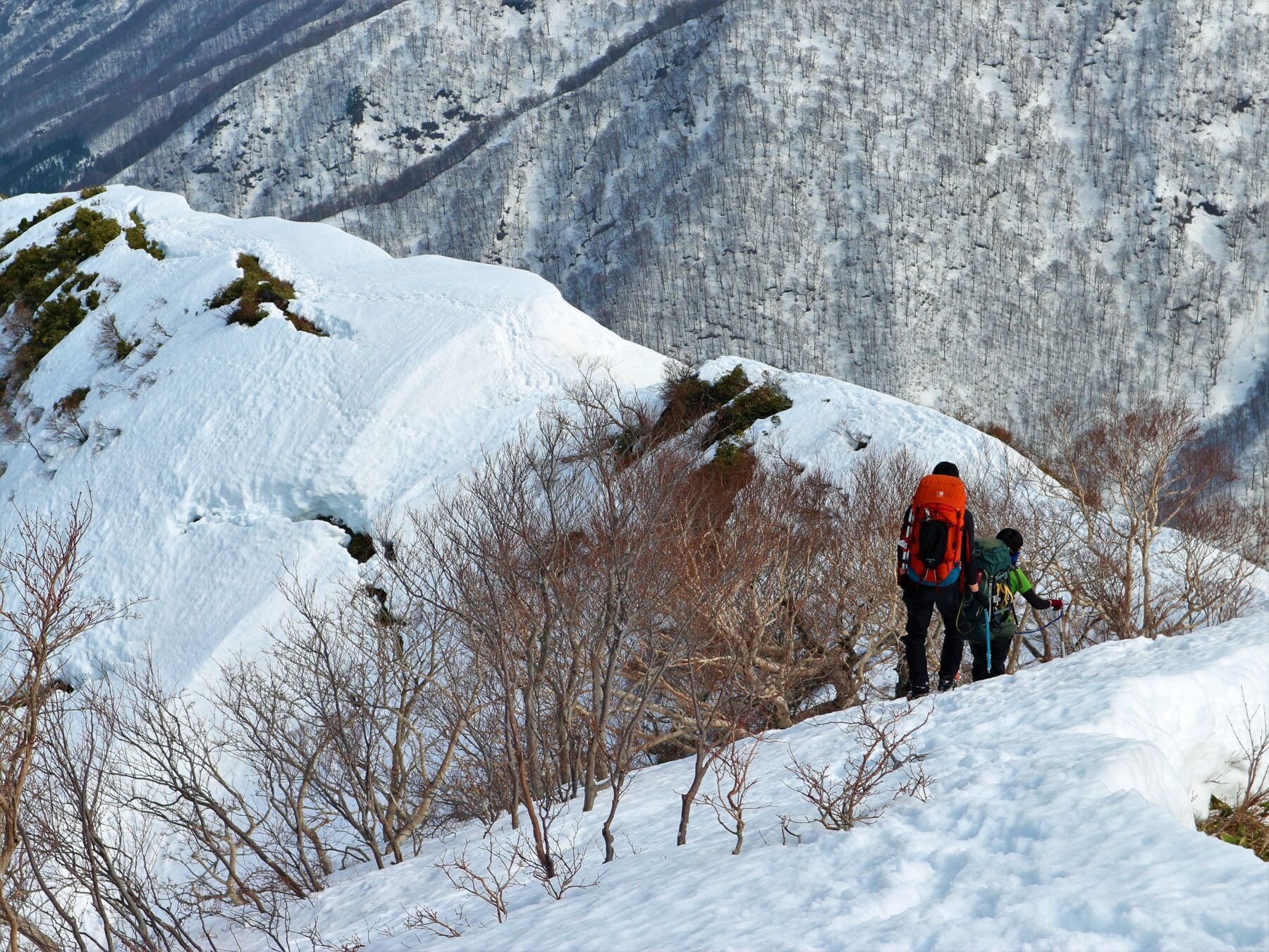 谷底まで切れ落ちたナイフリッジや急斜面を慎重に越えていきます。
