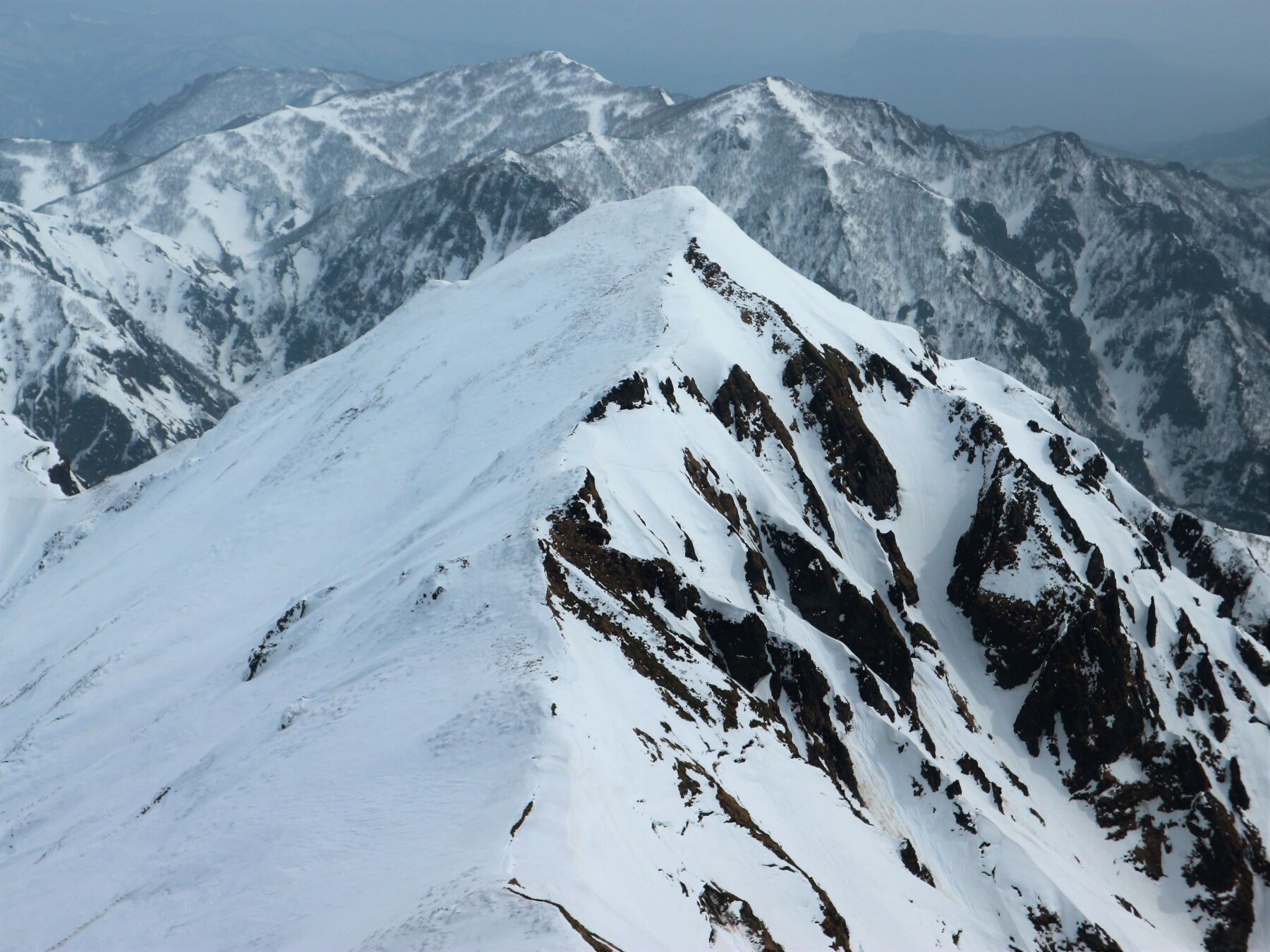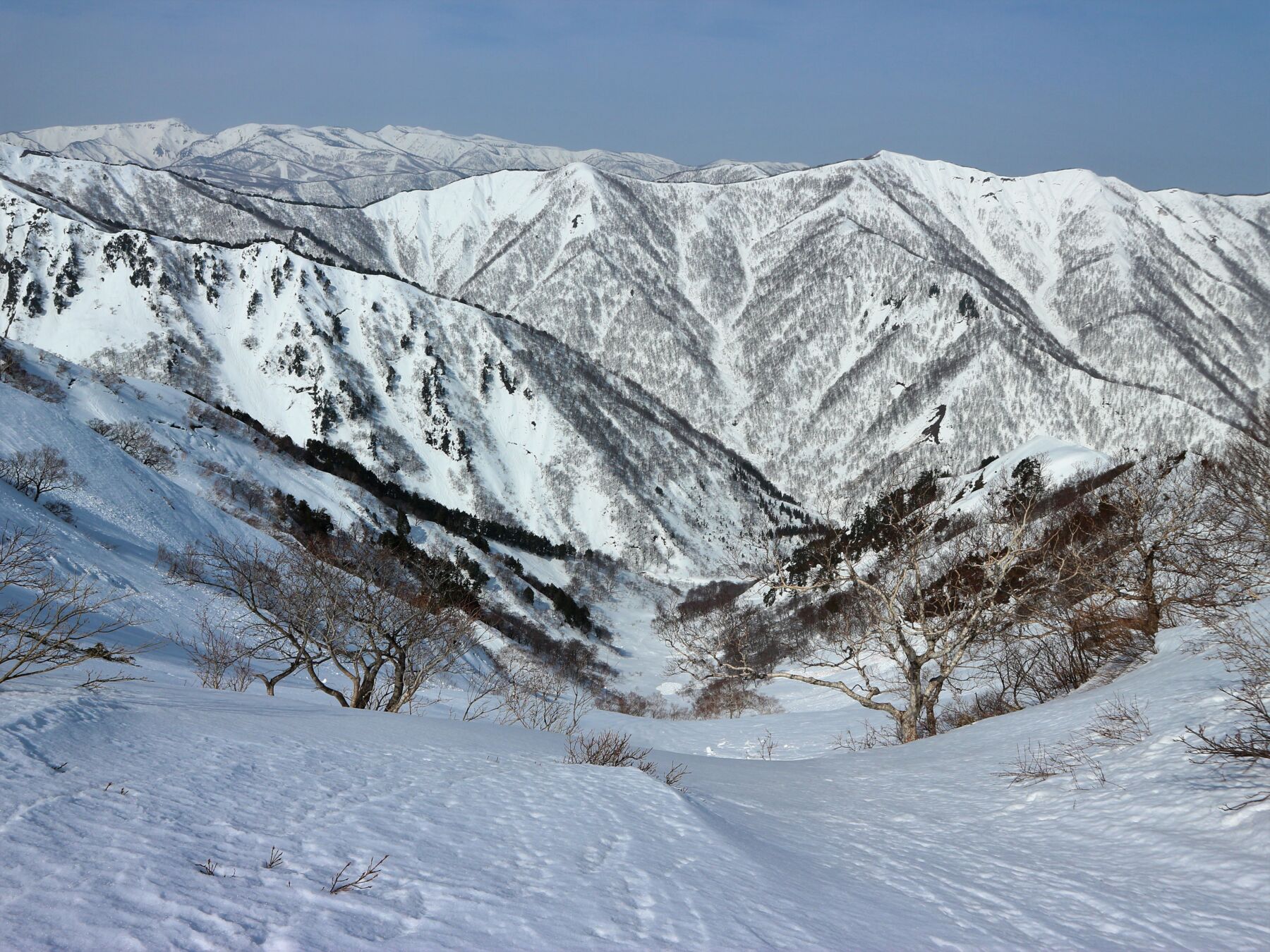 小屋場ノ頭(1182m)からはアイゼン&ピッケルという装備に変え、