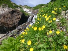 北アルプスの名峰 白馬岳 2016/07/23 少し前になりますが、7月10日(日)に長野・新潟・富山の三県境近くにある 北アルプスの名峰『白馬岳(2932m)』に登ってきました。 今回歩いたのは「白馬大雪渓」という残雪の谷間を登るコース。 青空に向かって伸びる真っ白な雪渓を登るのは実に爽快でした! たっぷり汗を掻きながら雪渓を登り切った先には、お花畑が広がります。 キンポウゲやハクサンイチゲ、クルマユリにウルップソウなどなど、 カラフルな高山植物たちが咲く美しい世界を堪能しました~(^^)/
