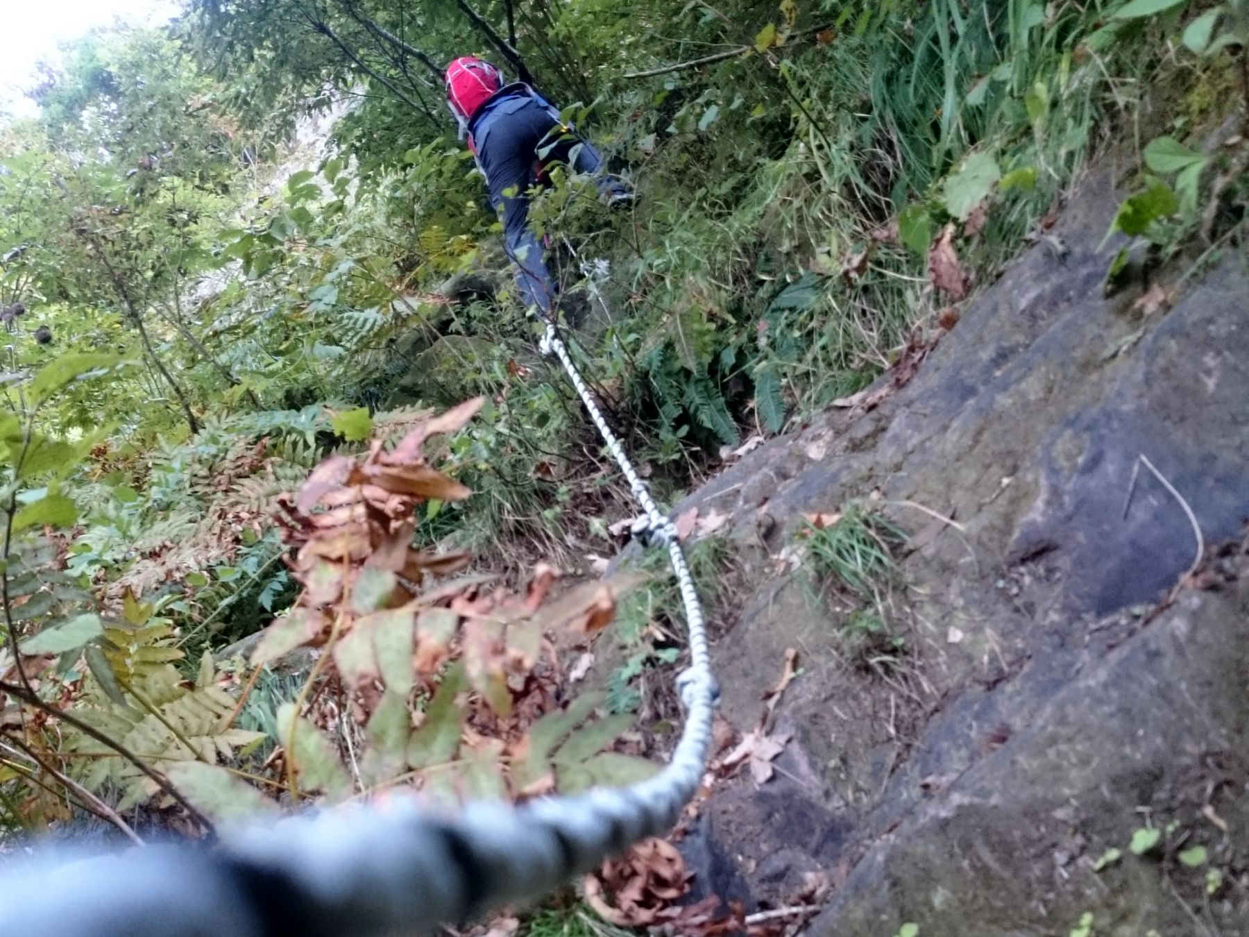 滑りやすい沢を4つ徒渉し、そこからはロープや鎖場が連続する急斜面の岩場がひたすら続きます。