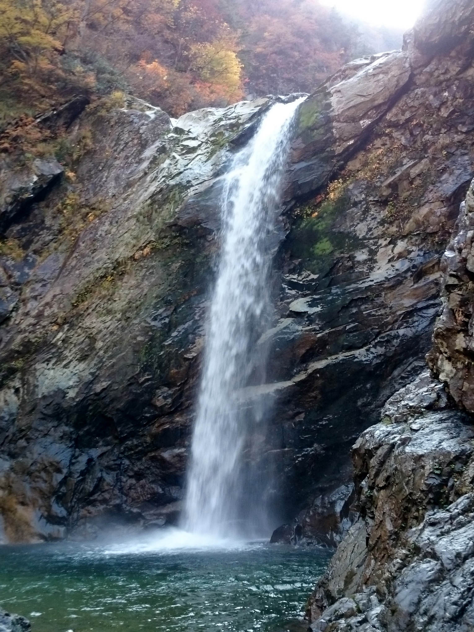 不動滝、夫婦滝などが次々と現れます。深く切れ込んだV字谷は青白く、