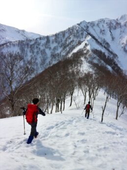 平標山へ縦走し、さらにヤカイ沢の雪渓を下山路に選びました。
