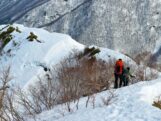 小屋場ノ頭(1182m)からはアイゼン&ピッケルという装備に変え、