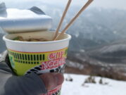 誰もいない山中で、この日の登山を振り返りながらラーメンをすすりました。