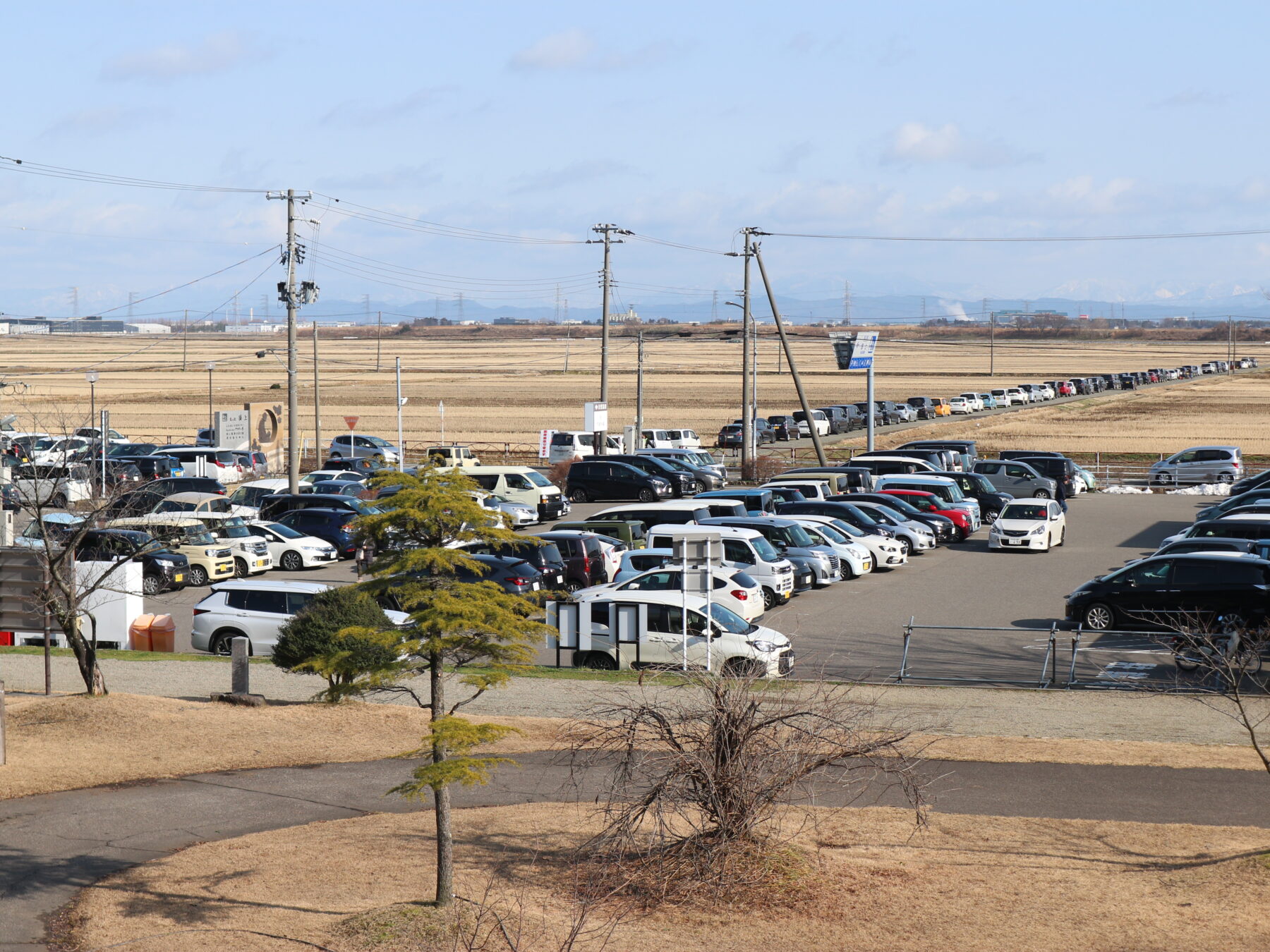 200台以上ある駐車場のほかに、農道脇の特別駐車スペースも満車でしたが、