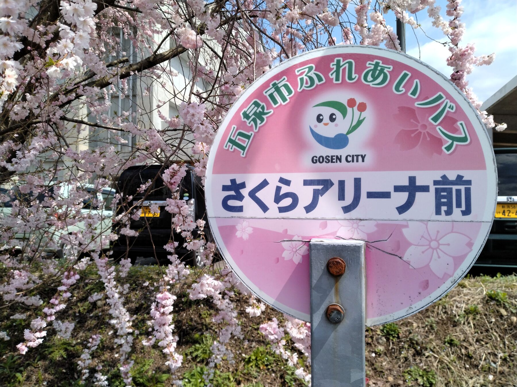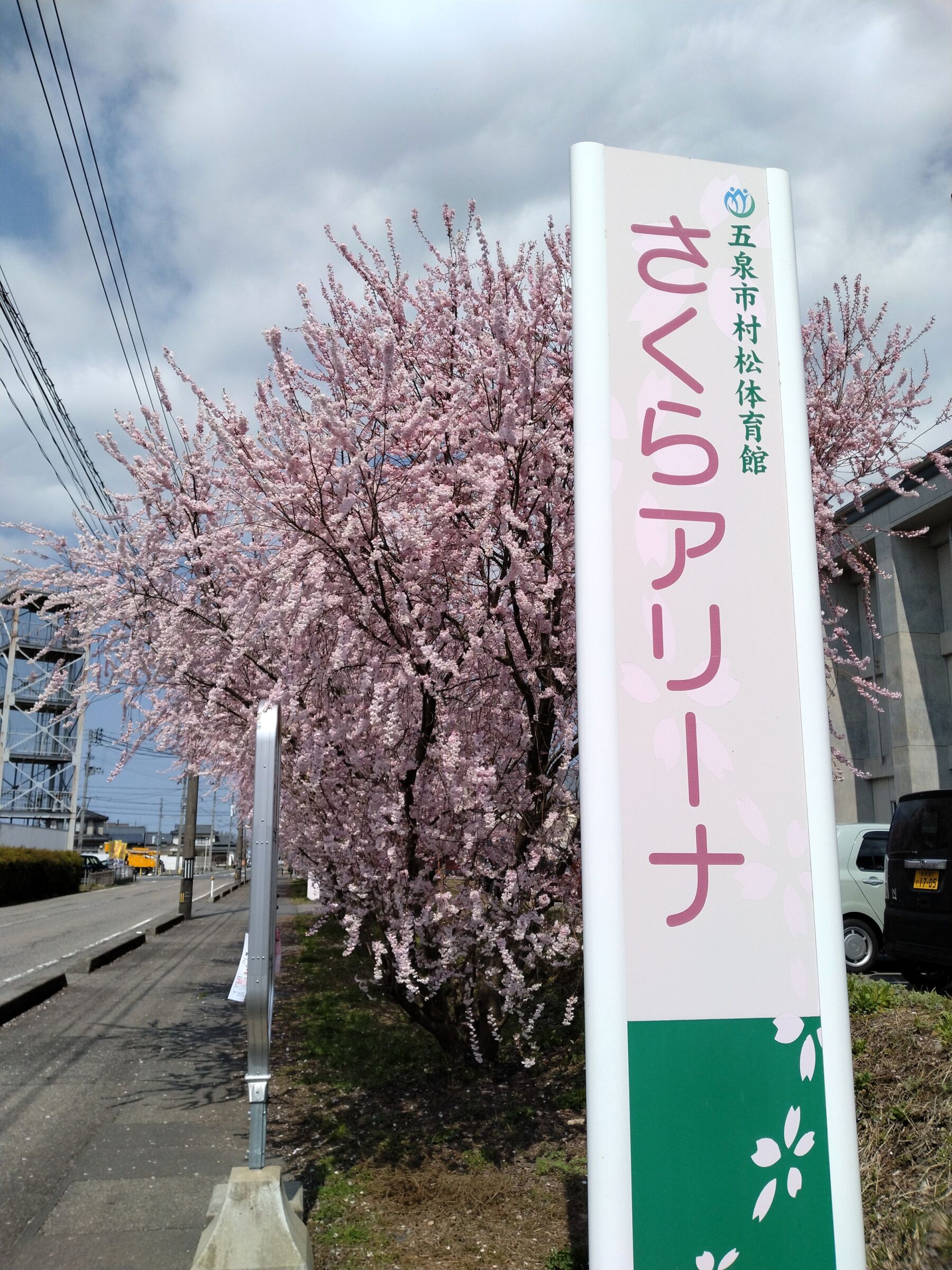 五泉市村松体育館「さくらアリーナ」脇の道路沿いでした。