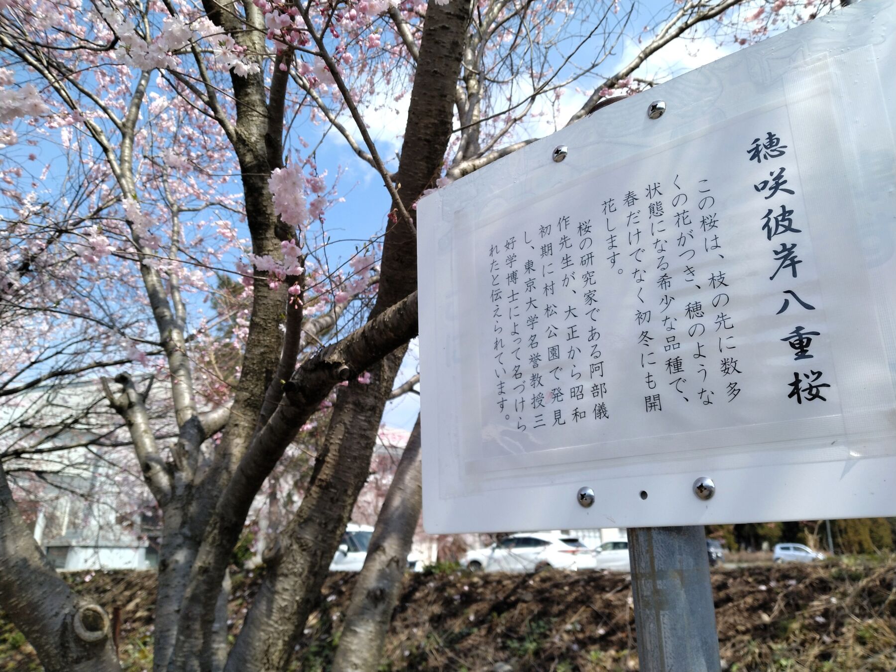 『穂咲彼岸八重桜』という希少品種とのことでした。